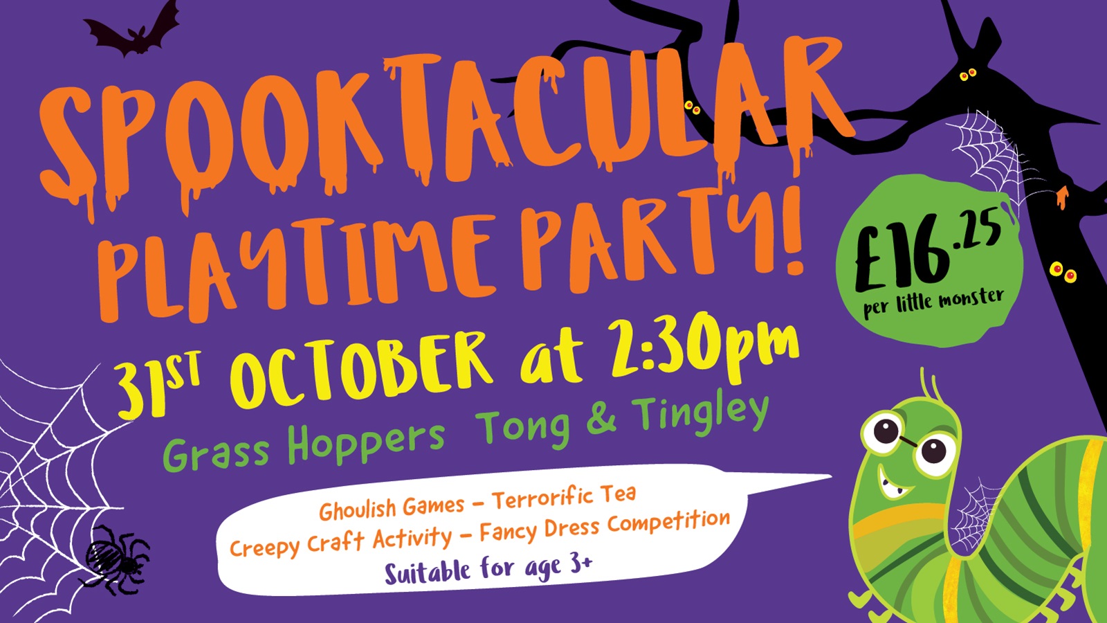 The Grass Hoppers Gang has conjured up something terrifyingly fun just for YOU. Halloween is right around the corner, and we’re thrilled to announce that SPOOKTACULAR PLAYTIME PARTY TICKETS ARE NOW LIVE
